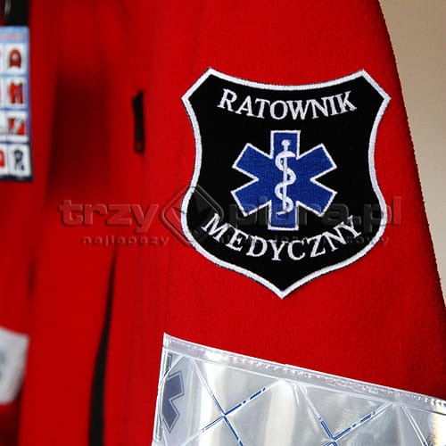Haftowana plakietka ratownicza, emblemat z napisem Ratownik Medyczny.
